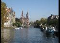 Un homme en imperméable-cravate soulève un grand drap noir, sous lequel apparaît un panneau de signalisation. Sur fond bleu, voici deux voitures stylisées, des modèles bien compacts comme on en construisait dans les années 1970, et des flèches figurant des voies de circulation. C’est d’ailleurs écrit au-dessus: « Avenue des Vosges, retour à deux fois deux voies de circulation ». Puis l’homme regarde le panneau d’un air énamouré, comme si ce dernier allait lui faire un bisou. L’avenue des Vosges traverse Strasbourg, à proximité de l’hyper centre-ville.